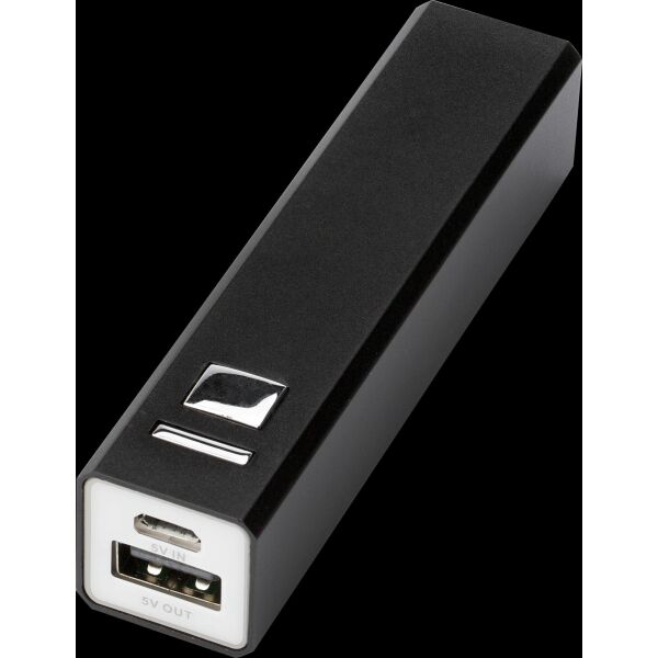 Aluminium powerbank met Li-ion batterij, een capaciteit van 2.600mAh, ingang 5V/1.000mA en uitgang 5V/1.000mA. Inclusief micro USB kabel, geschikt voor de meeste mobiele apparaten.
