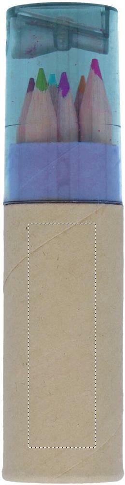 6 stuks kleurpotloden in gerecyclede papieren koker. Een transparante deksel met puntenslijper.